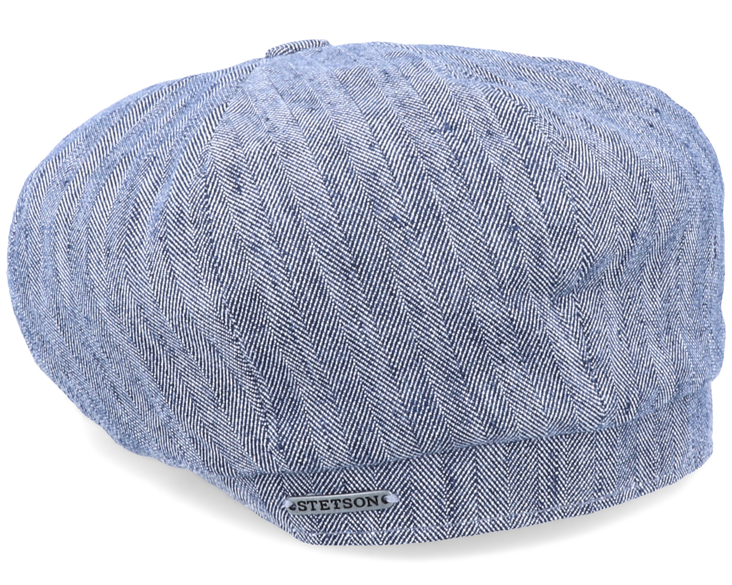 Stetson Hatteras Herringbone Cotton/Linen Blue Flat Cap